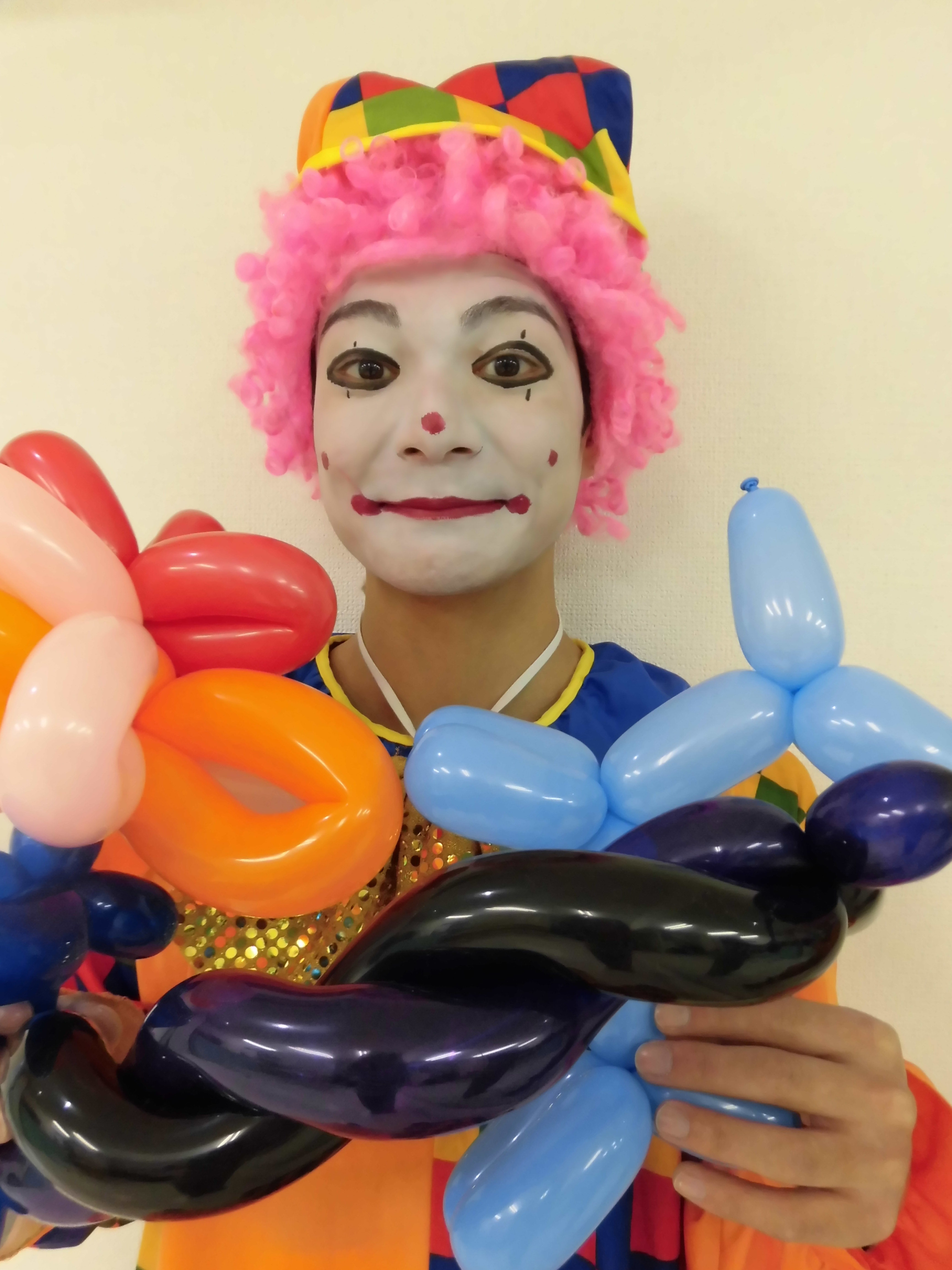 愉快なクラウン芸でハイスピードなショータイムを繰り広げます。得意技は、パントマイム・ジャグリング・マジック・他