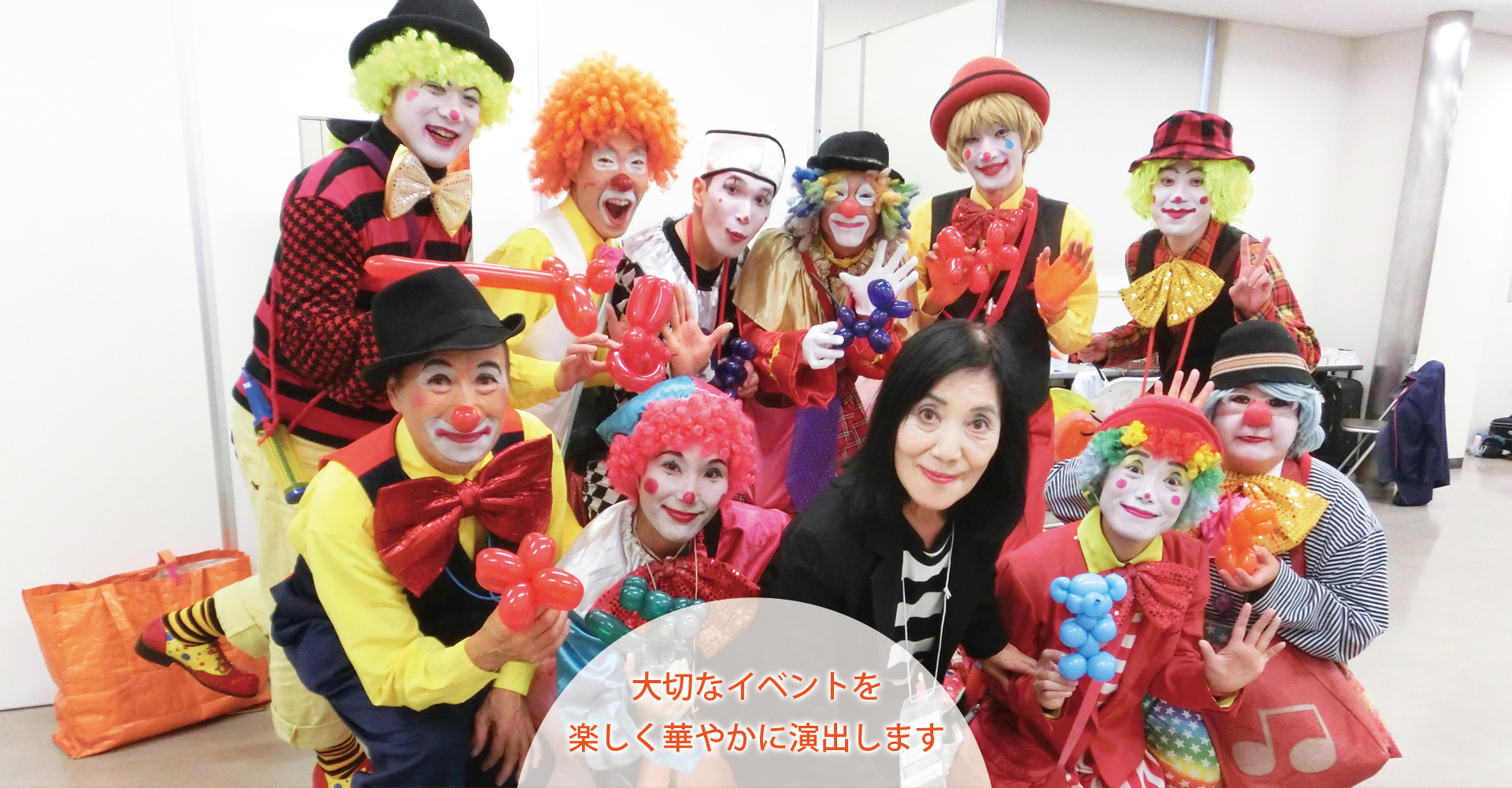 ピエロがパーティ・祭りなど様々なイベントを