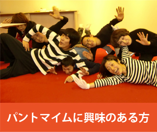 趣味として楽しみたい方、プロ養成、劇団・タレント・お笑い志望様々な要望にあわせてパントマイムを学べるアットホームなスクールです!